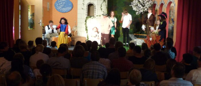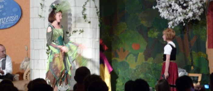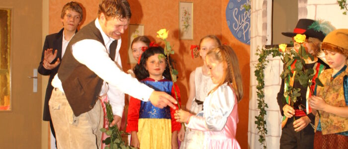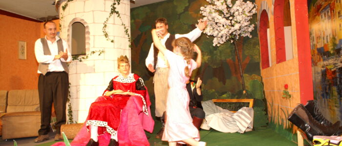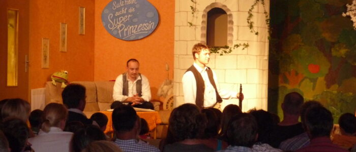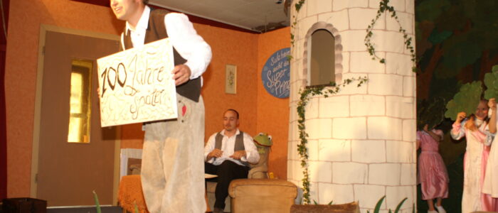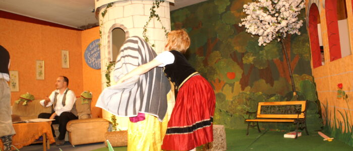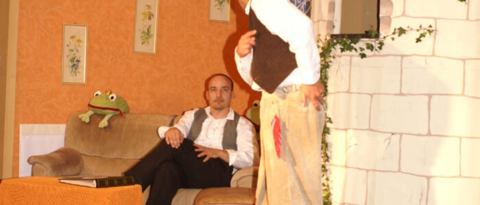 Die Gebrüder Grimm höchstpersönlich versuchen mit viel Witz aber wenig Geld, ihre gesammelten Märchen auf die Bühne zu bringen. Dass dies nicht immer reibungslos klappt, sei an dieser Stelle schon verraten. Bereits das Casting bringt manche Überraschung. Die engagierten Prinzen stellen sich als höchst eigenwillig bzw. völlig überfordert heraus, wenn sie auf liebeslüsterne, emanzipierte und höchst anspruchsvolle Prinzessinnen stoßen. Der gestiefelte Kater treibt sein eigenes Spiel, genauso wie die Hexe und Stiefmutter, die jede auf ihre Weise versuchen, zu ihrem Recht zu kommen. Was kann eine gute Fee bei soviel Turbulenzen noch bewirken und wen wundert’s, wenn sich die Märchenfiguren schließlich gegen ihre Erschaffer erheben?
